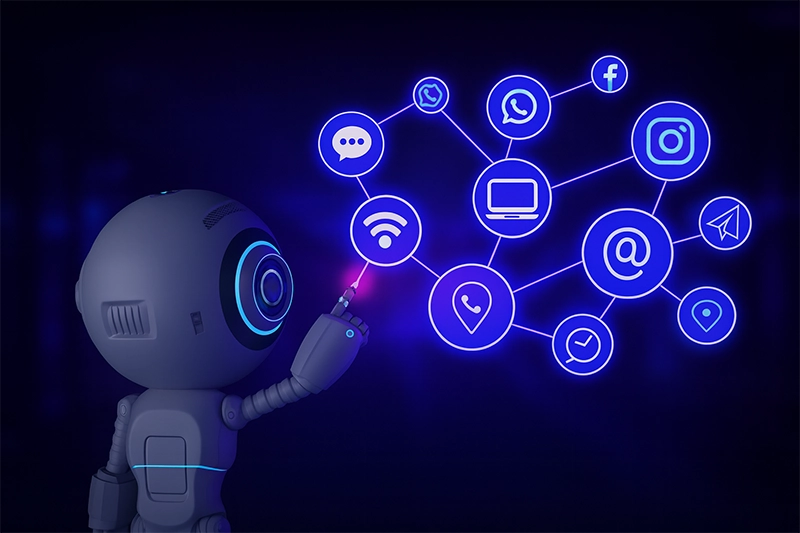 - Atiende clientes en WhatsApp, Instagram, Facebook, Telegram y WebChat.