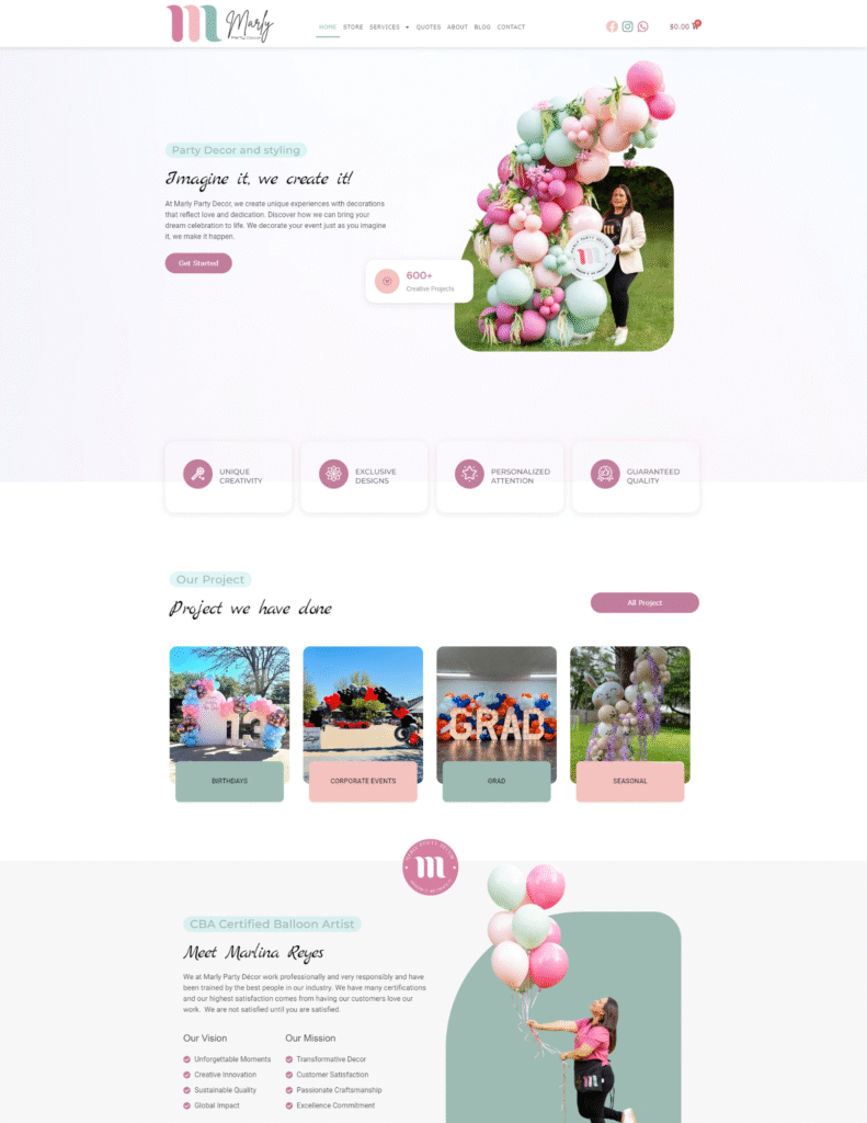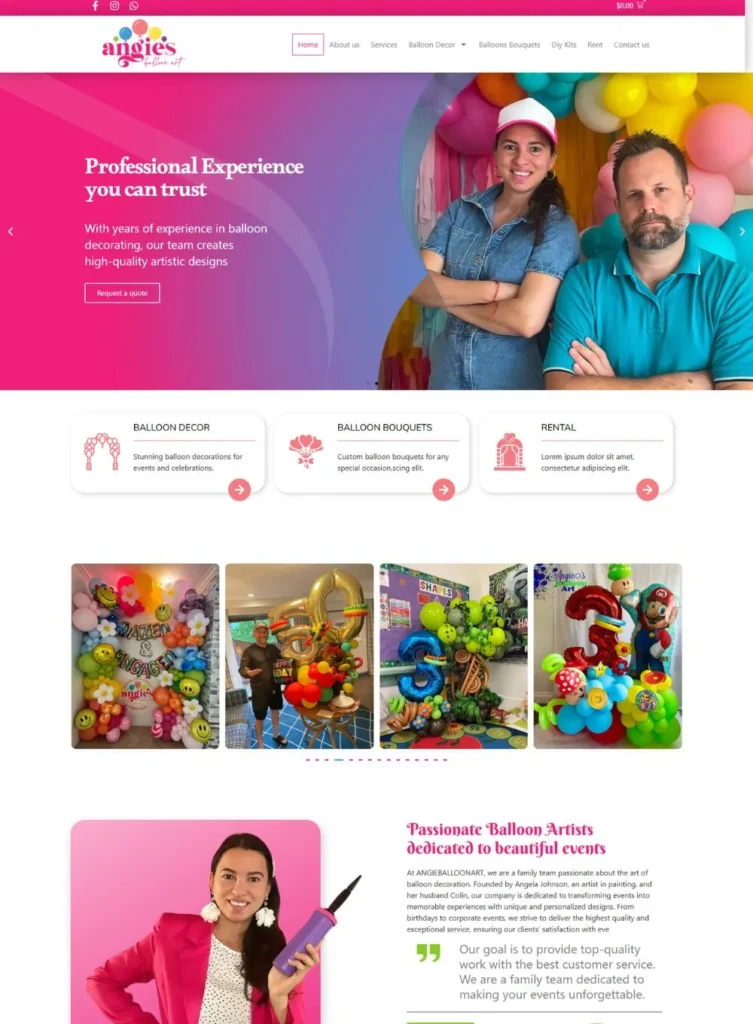 Secciones clave de un sitio web profesional para negocios de decoración con globos